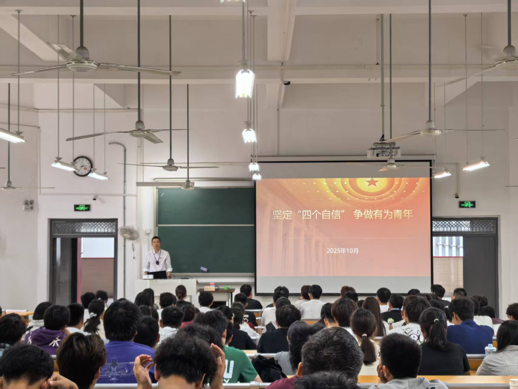 在天工301教室举办2025级新生“开学第一课”,学院党委书记范洪喜以“坚定‘四个自信’,争做有为青年”为题,为230余名2025级本科生、研究生作专题报告。