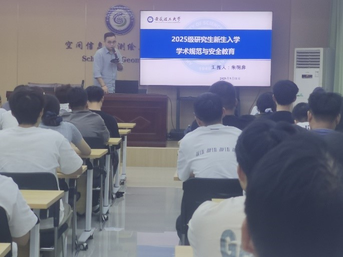 于9月11日在求本楼北204组织召开2025级研究生“学术规范与安全教育”主题班会。会议由学院教师朱明非主讲,全体2025级研究生新生参加。